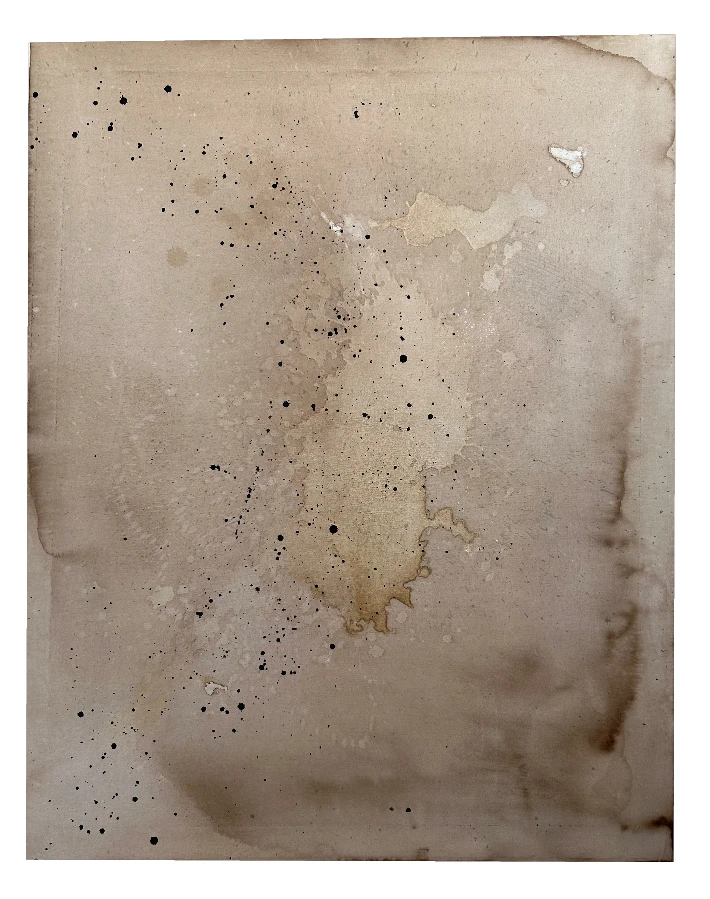 Cada trazo lleva su espíritu: la base está hecha con café —káva en checo, como ella lo pedía— y la tinta negra, con carbón. Materiales nobles que dialogan con la tierra, con lo simple, con lo verdadero.