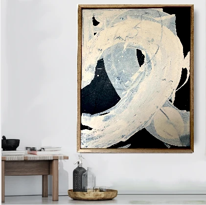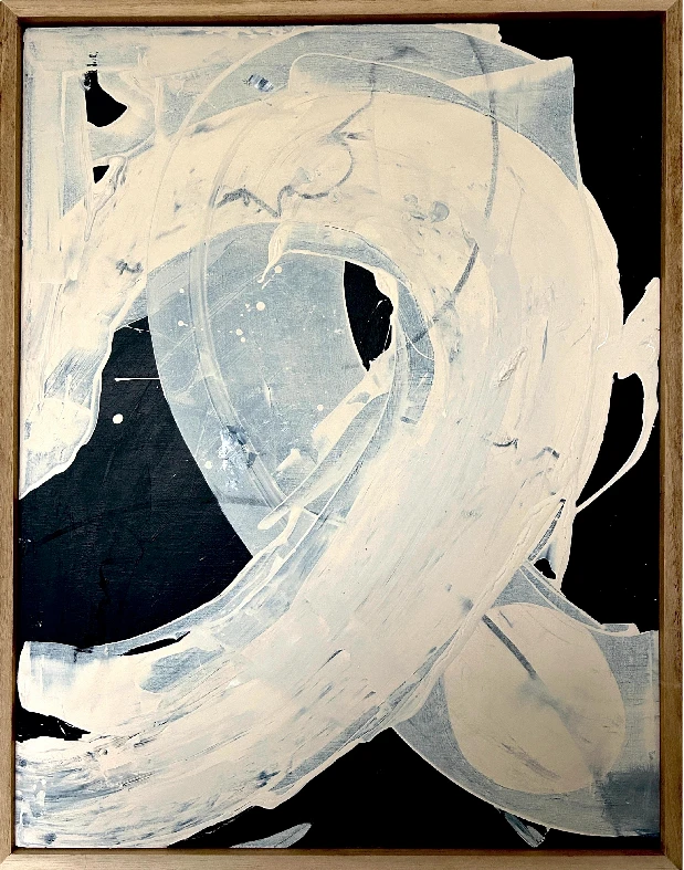 Ese negro profundo que abraza el lienzo no es vacío. Es el espacio necesario para que lo nuevo tome forma. Y ahí, en medio de esa oscuridad, emergen trazos blancos y grises que fluyen libres, sin estructuras que los contengan. Dejé una parte de lo que fue, pero lo transformé en algo nuevo. Más genuino, más mío.